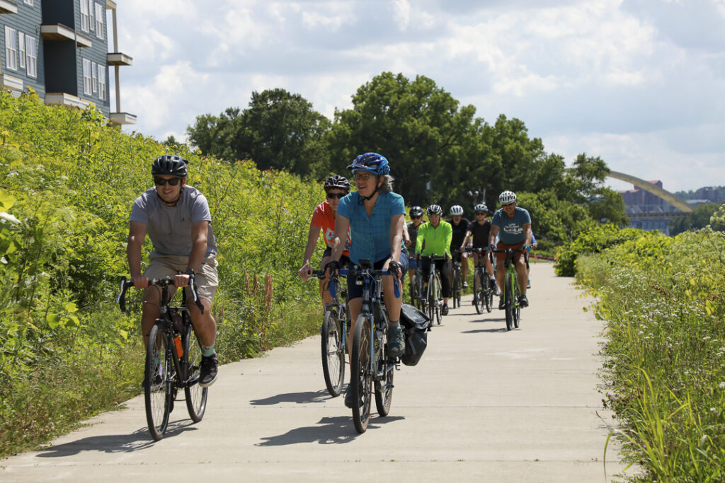 In May, we participated in the region’s biggest Bike-to-Work Week celebration to date. It kicked off with the much-anticipated return of Red Bike, Cincinnati’s beloved bike share, which had temporarily shut down due to budget constraints. The successful reopening, supported by a coalition of city leaders, organizations, and advocates, helped power the Congress for the New Urbanism’s 32nd annual convening. Using Red Bike e-bikes, Tri-State Trails led five bike tours for city planners, architects, and urbanists showcasing Cincinnati’s burgeoning trail and bike scene.